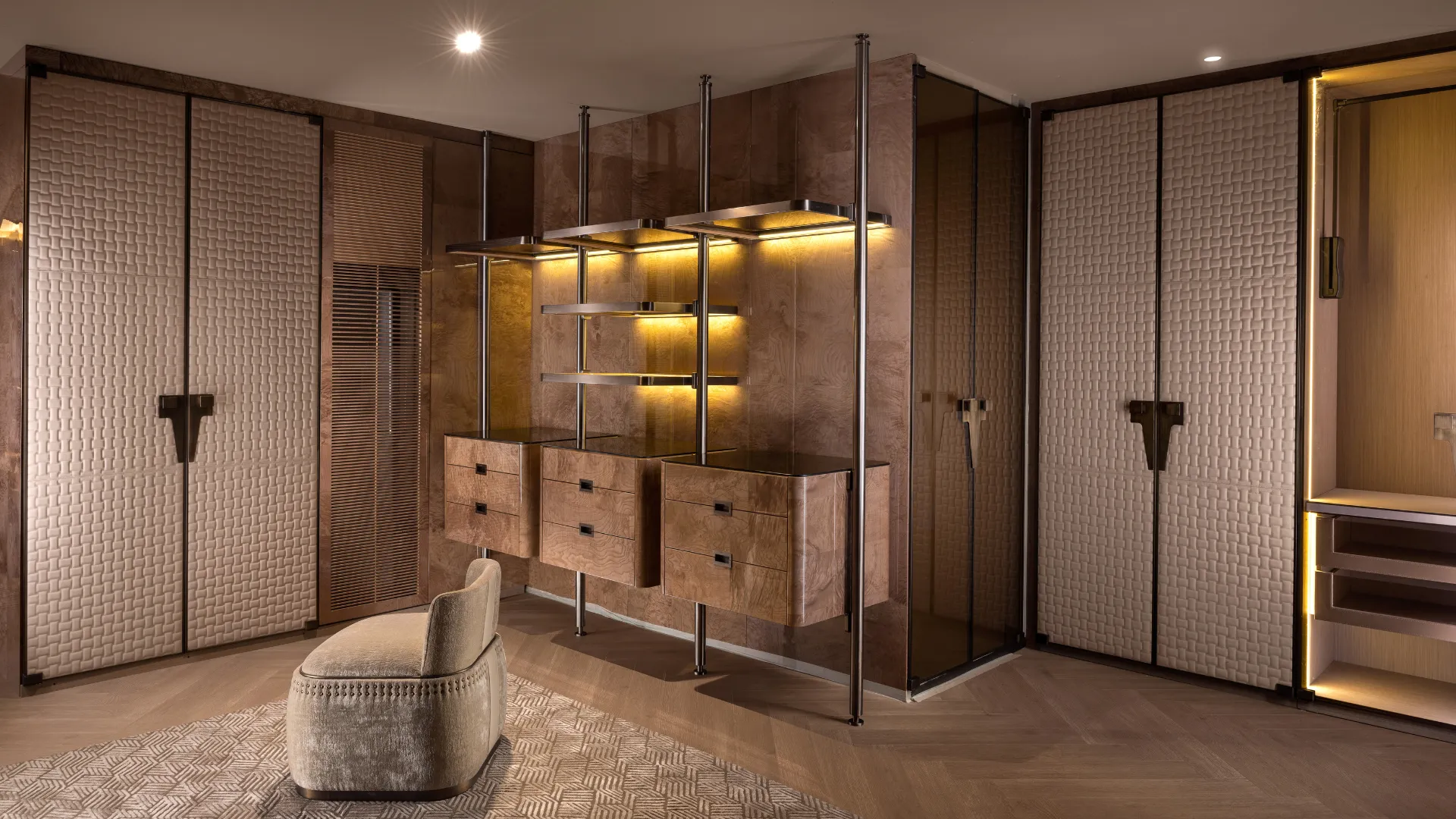Contemporary luxury interiors are no longer built through isolated statements. Furniture, wall panels, and lighting now operate as a cohesive system. Wall panels establish architectural rhythm and material continuity, furniture provides structure and comfort, and lighting connects the two by enhancing texture and guiding movement. When these elements are designed in dialogue with one another, the interior gains a sense of unity and composure that feels natural rather than staged.
