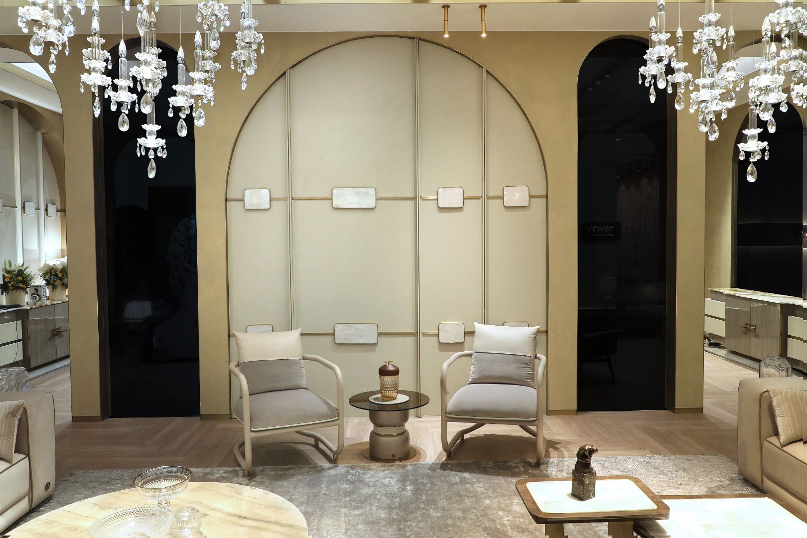A fluid upholstered structure brings visual lightness, while the iconic crossed backrest with engraved metal detail adds distinction. Wide seating, generous padding, and refined fabrics ensure exceptional comfort, making CLAIRE a statement piece for elegant interiors defined by emotion and Italian style.