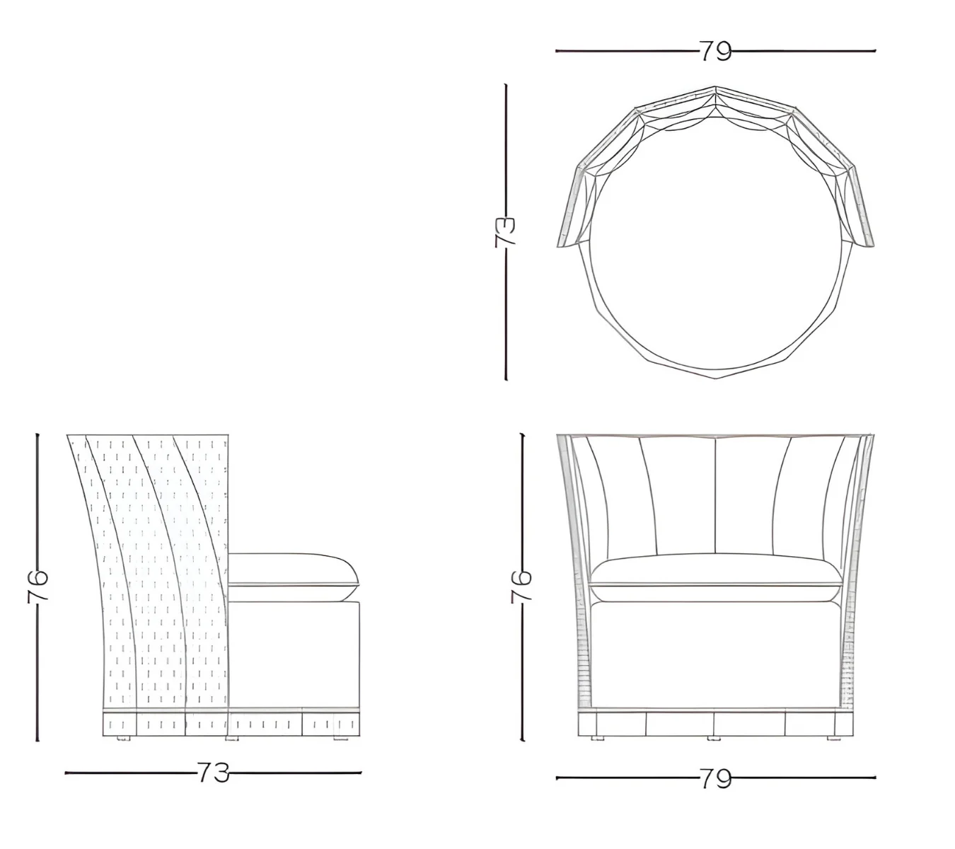 The elegant herringbone fabric adds subtle sophistication, contrasted by a sculptural dark wood base with geometric lines. A balanced blend of craftsmanship and warmth, HERVÈ becomes a quiet retreat with timeless character.