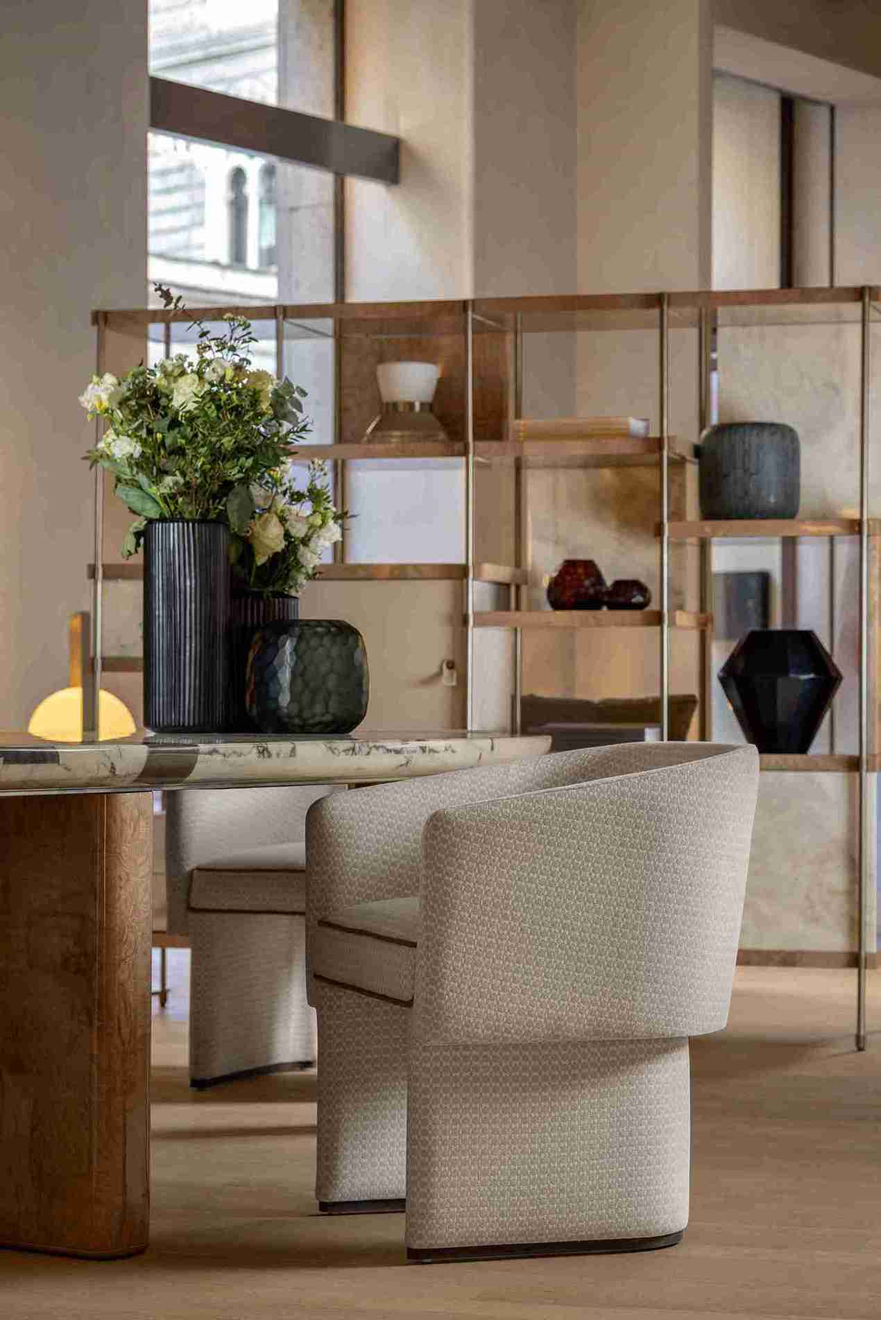 CH.11 is a compact armchair with a bold personality, combining comfort, style, and architectural form. Sculpted, geometric yet welcoming lines create a balanced interplay of volumes, where structural solidity meets soft textile upholstery.