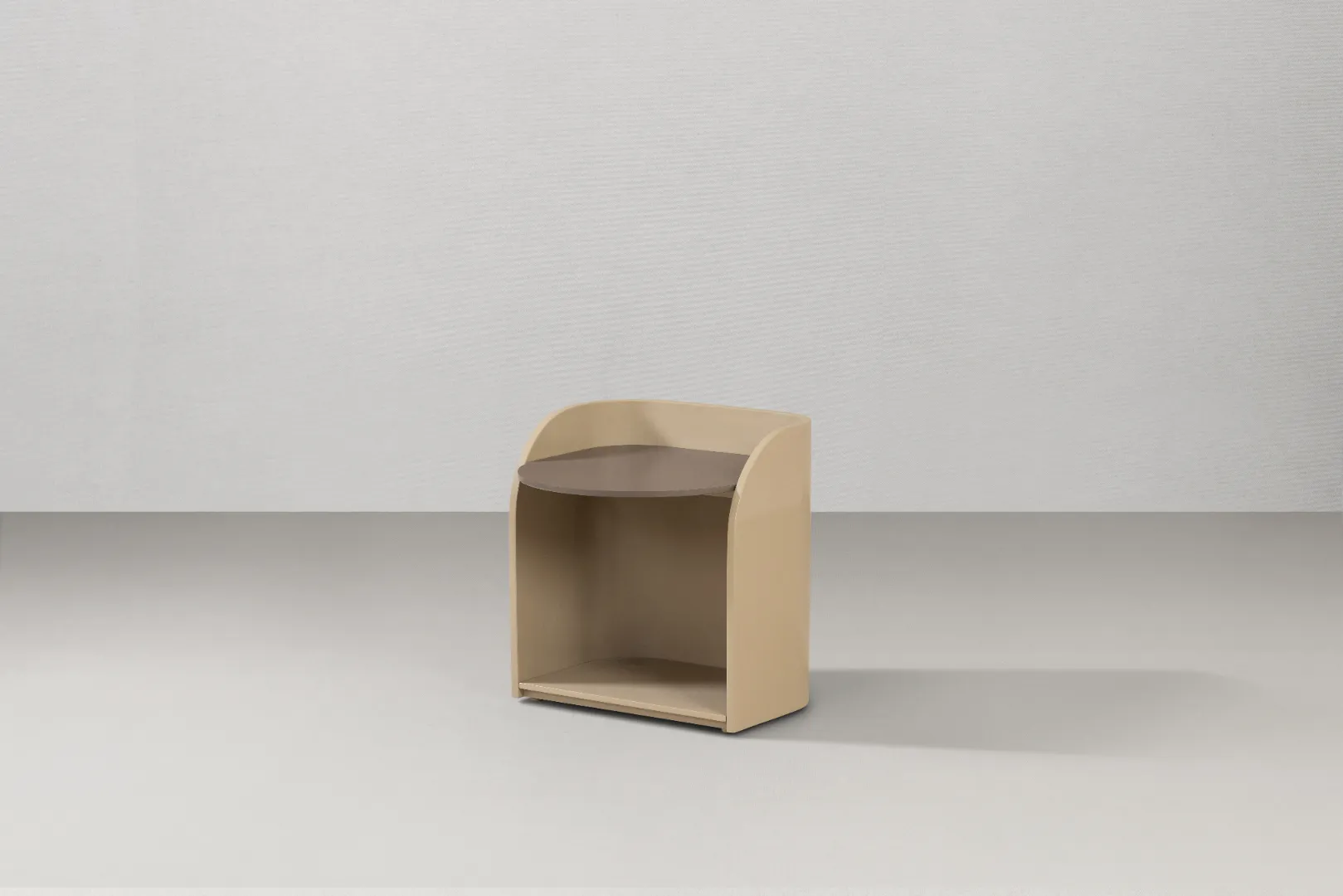 CTA.07 is a compact, sculpted furnishing piece that combines everyday functionality with refined design. Its curved lines and enveloping form create a structure with two open compartments, ideal as a bedside table, side table, or mini bookcase.