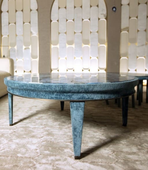 Its luminous, tactile top captures light with subtle grace, while tapered legs provide stability with visual lightness. Gael is a table defined by calm and harmony, where functionality meets visual poetry in a refined, timeless expression.