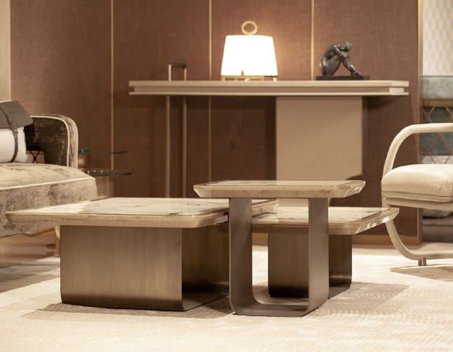 Remy combines strong presence with a calm, inviting aesthetic. A solid base supports a top that naturally catches light, creating visual balance and serenity. Its soft yet authoritative lines allow the table to complement any space with understated refinement.