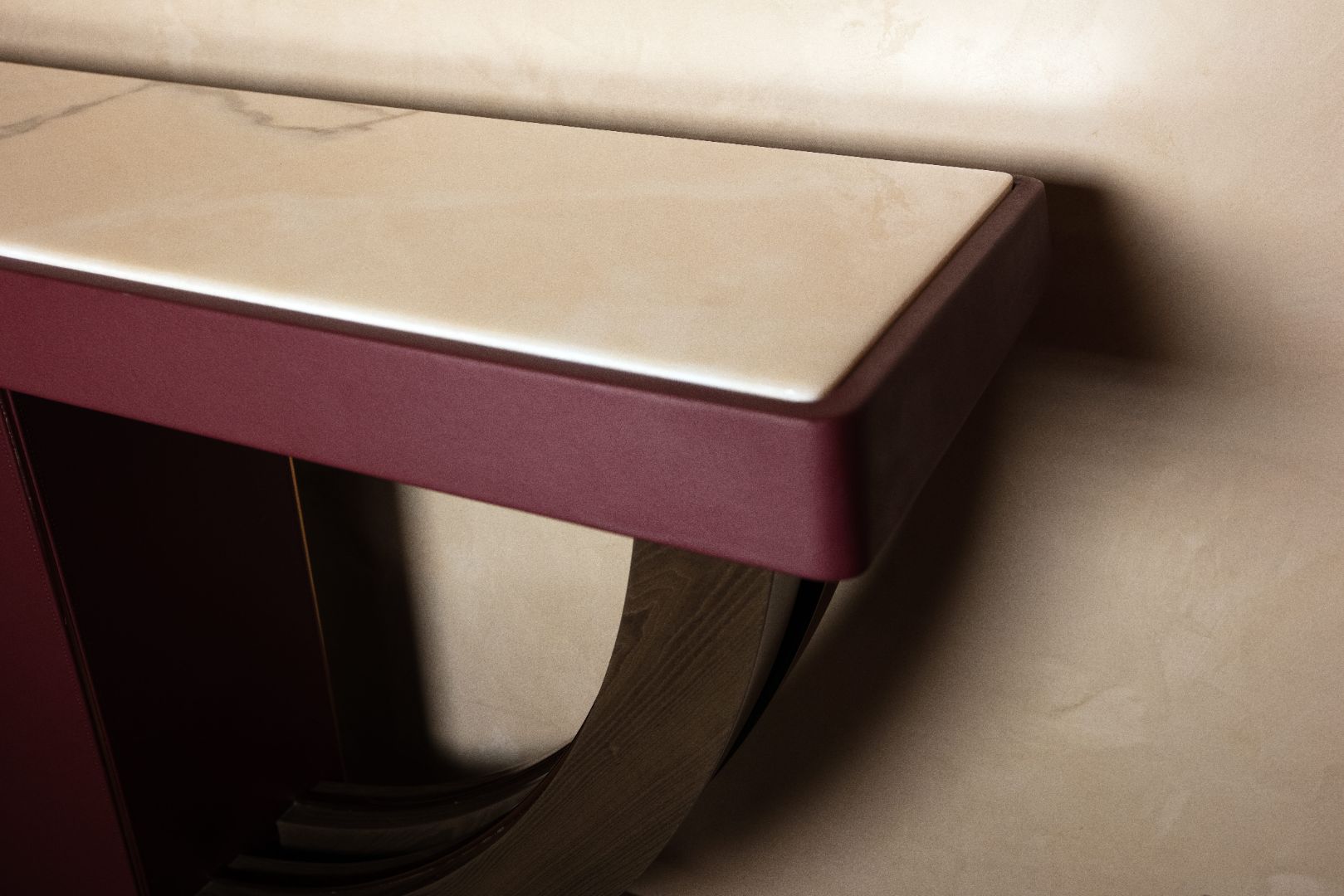 An elegant arch supports the marble top like a stroke of light. Romeo is a console that expresses contemporary design through fluidity and refinement, transforming structure into sculpture.