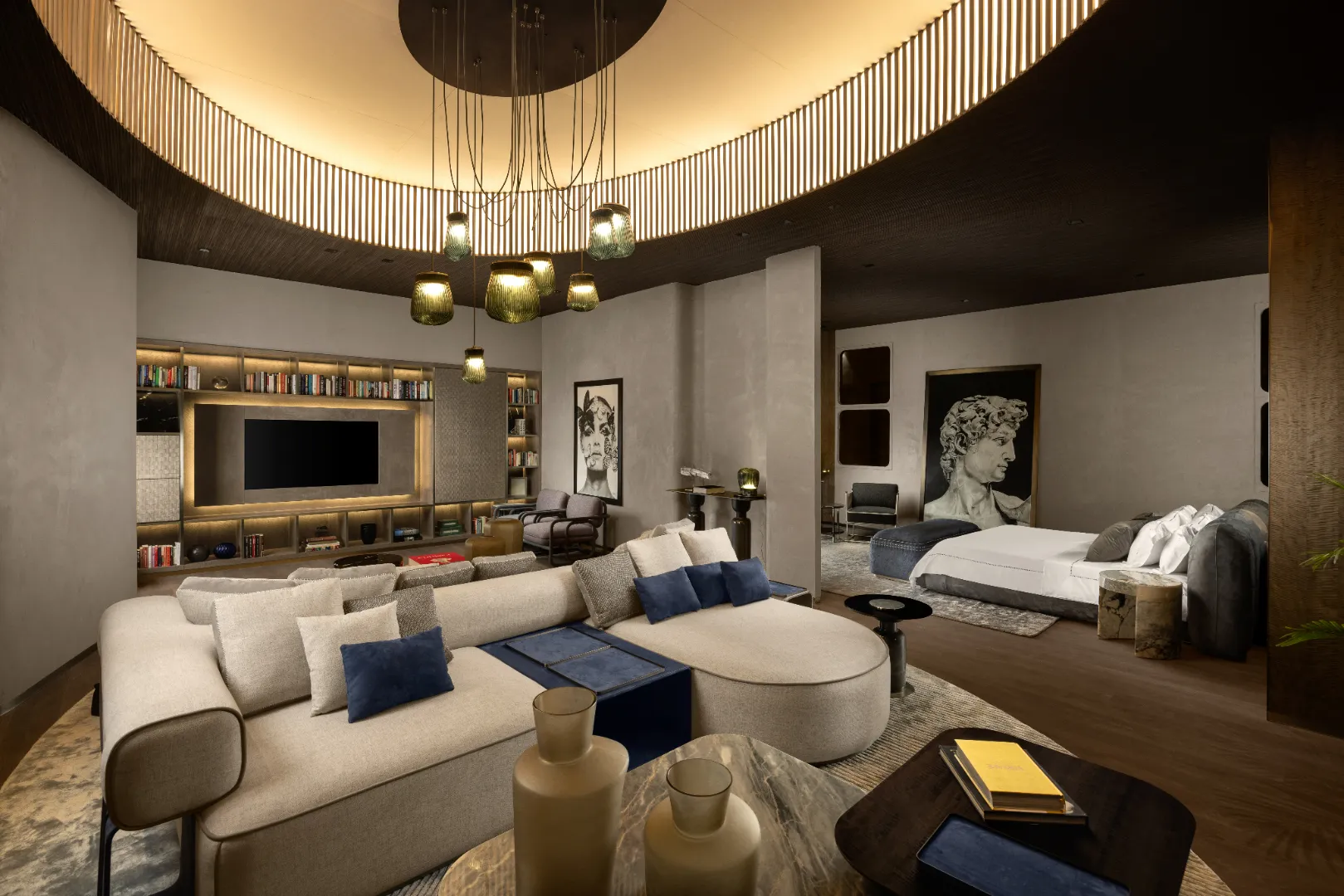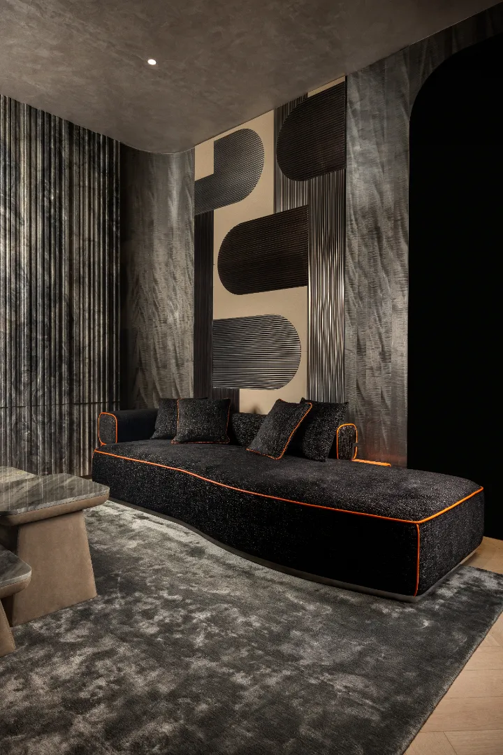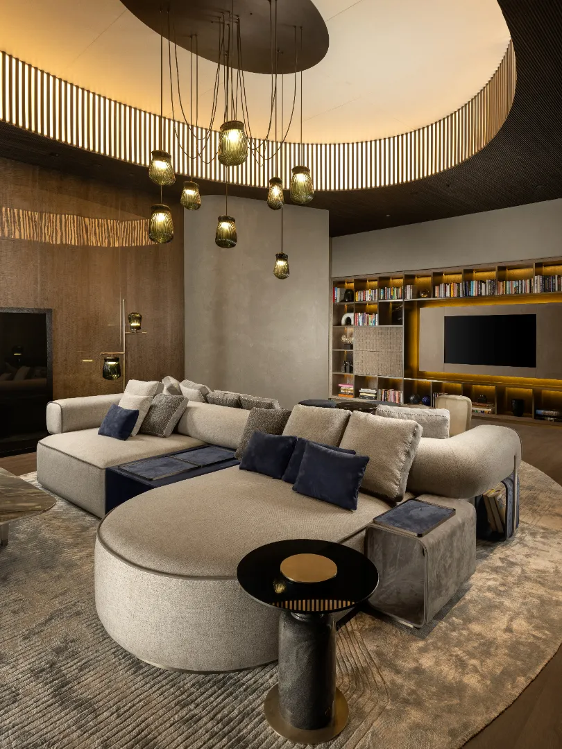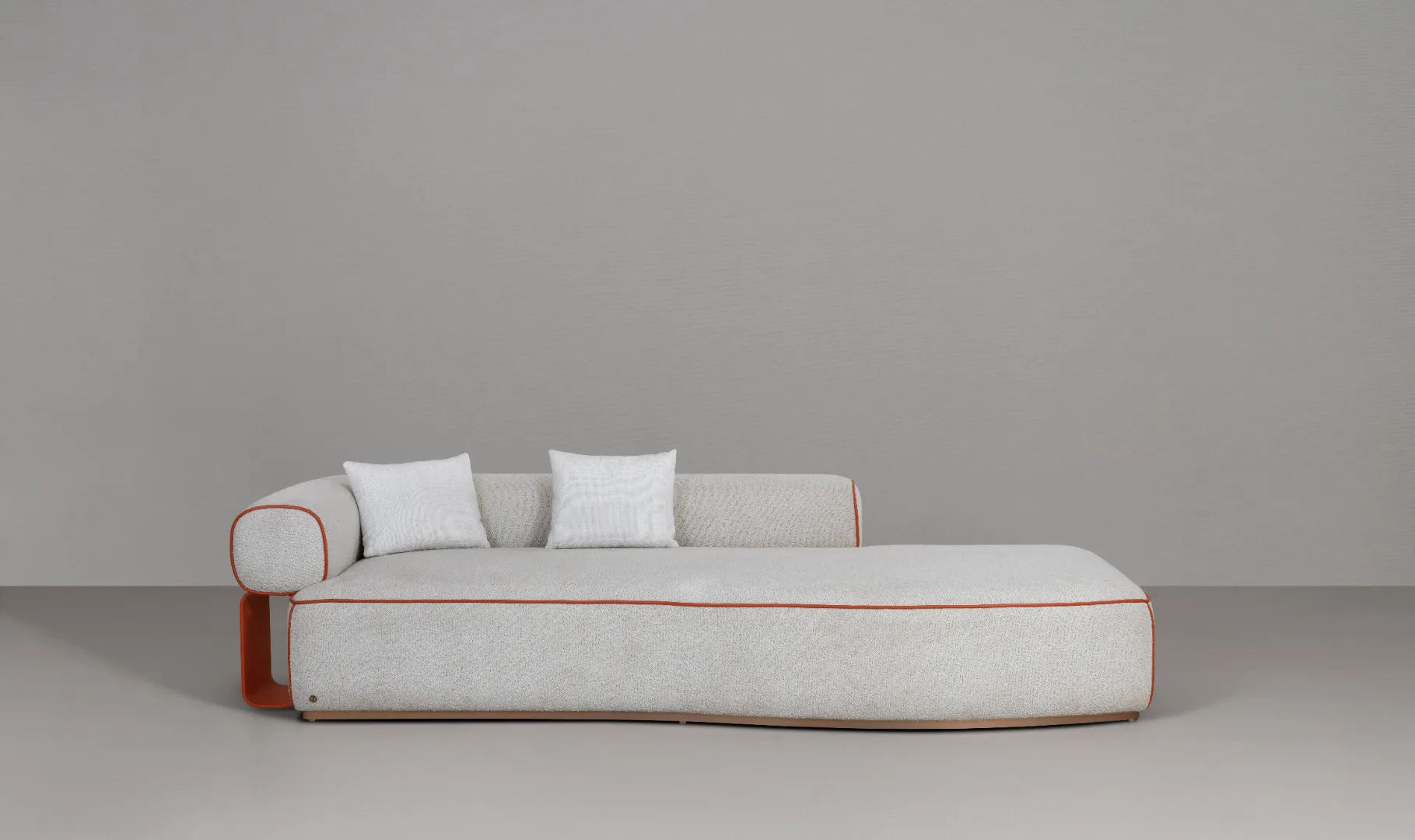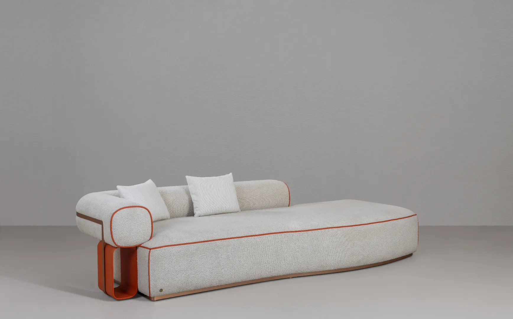 SO.05 blends refined aesthetics with intelligent functionality. Its fluid lines and sinuous silhouette give the sofa a sculptural presence that enhances any living space. Soft bouclé upholstery, enriched with contrasting leather details, creates a sophisticated visual balance.