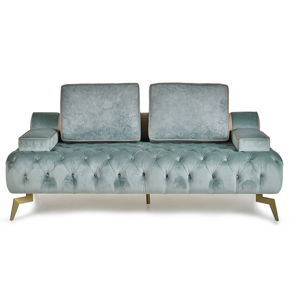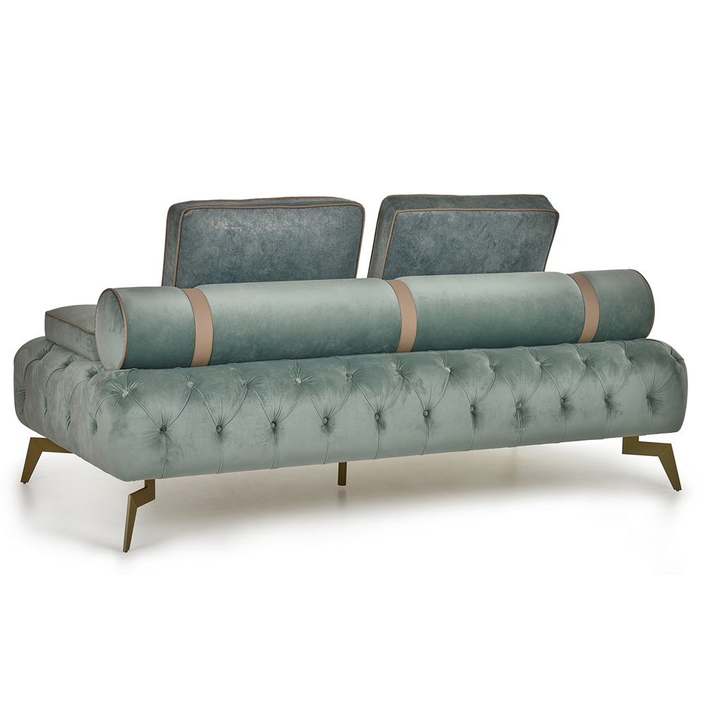 Inspired by contemporary design, Tiffany sofa is one to turn heads for every reason. Its detailed tufting along with a combination of velvet and leatherette adds a modern twist into your stylish space.